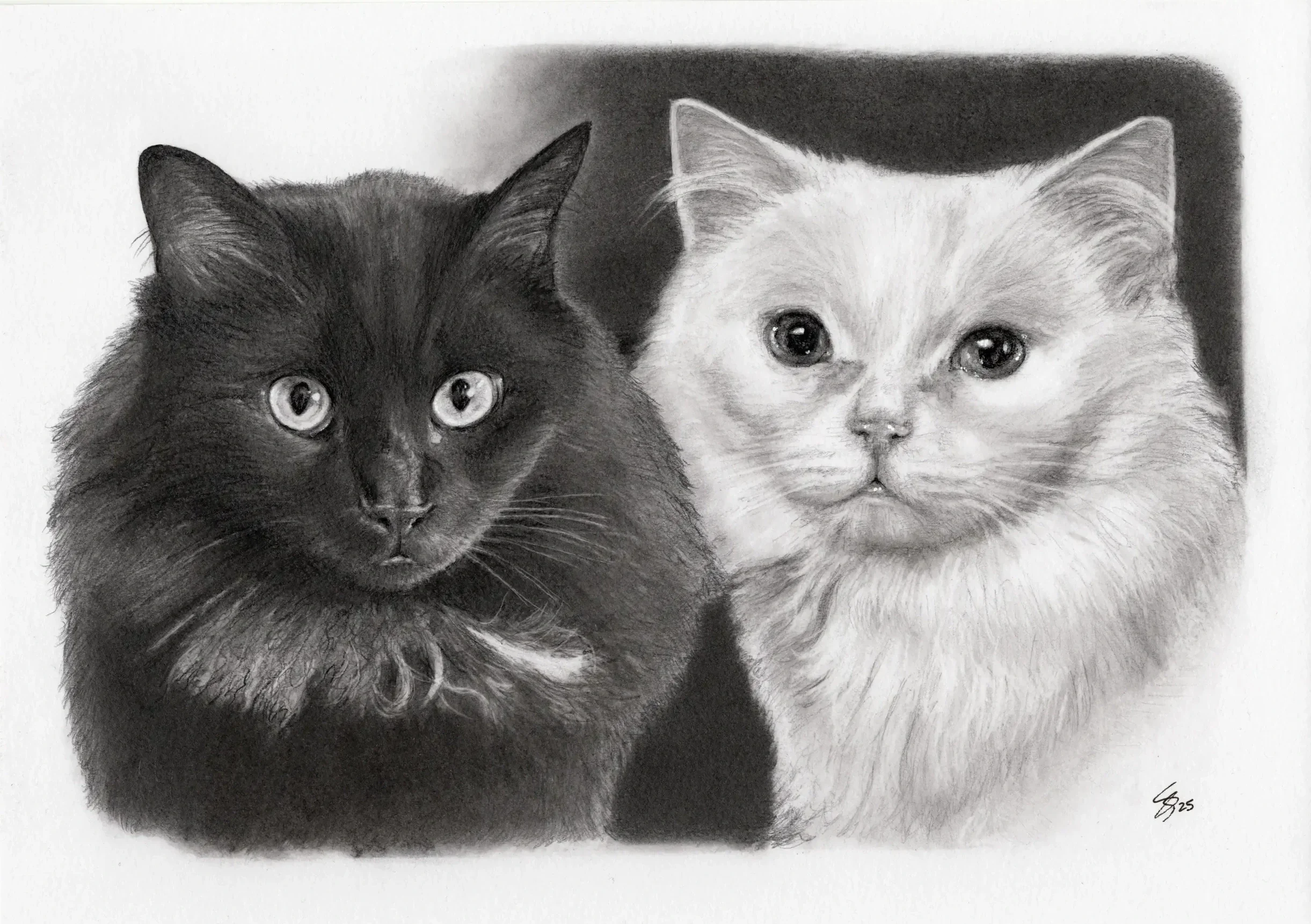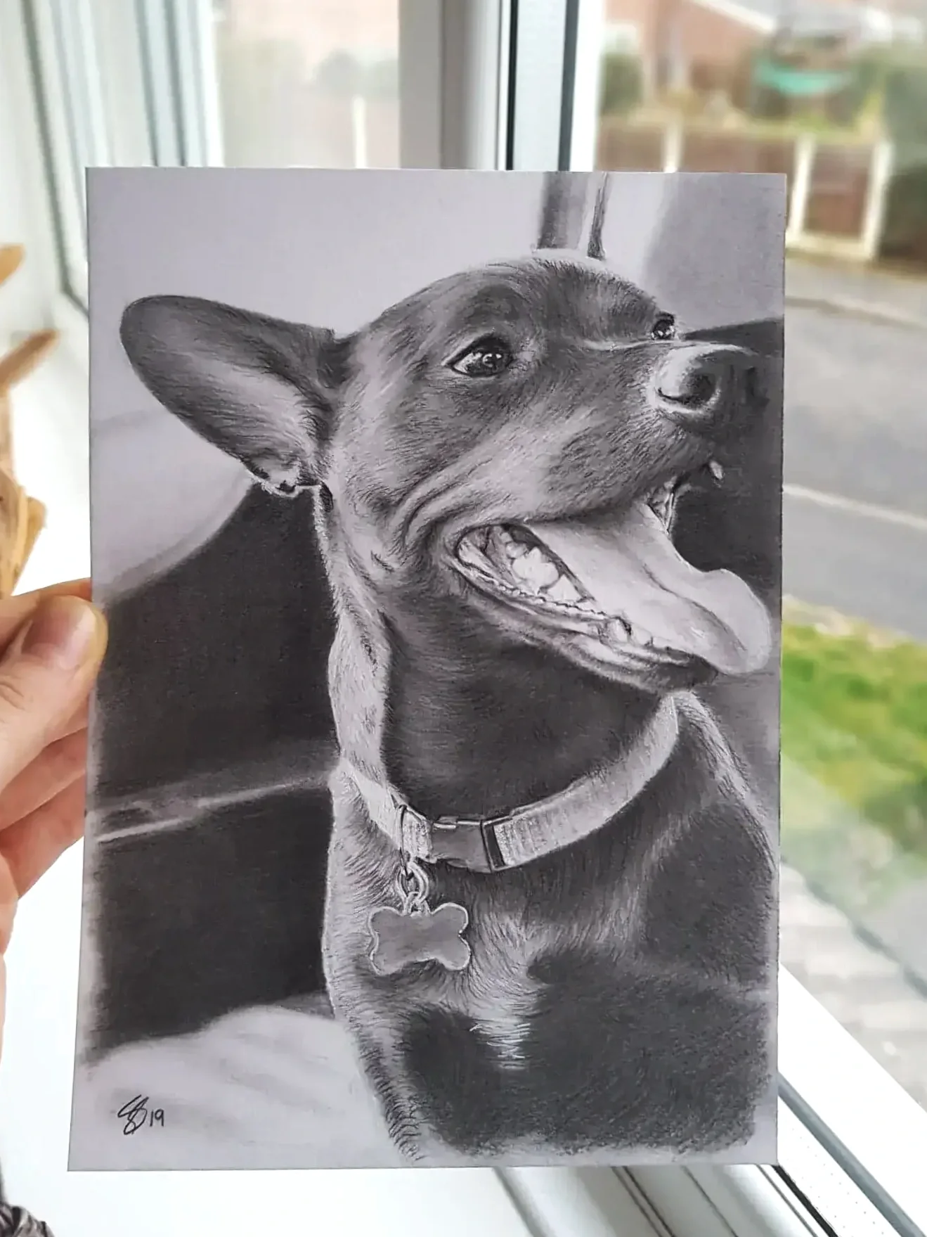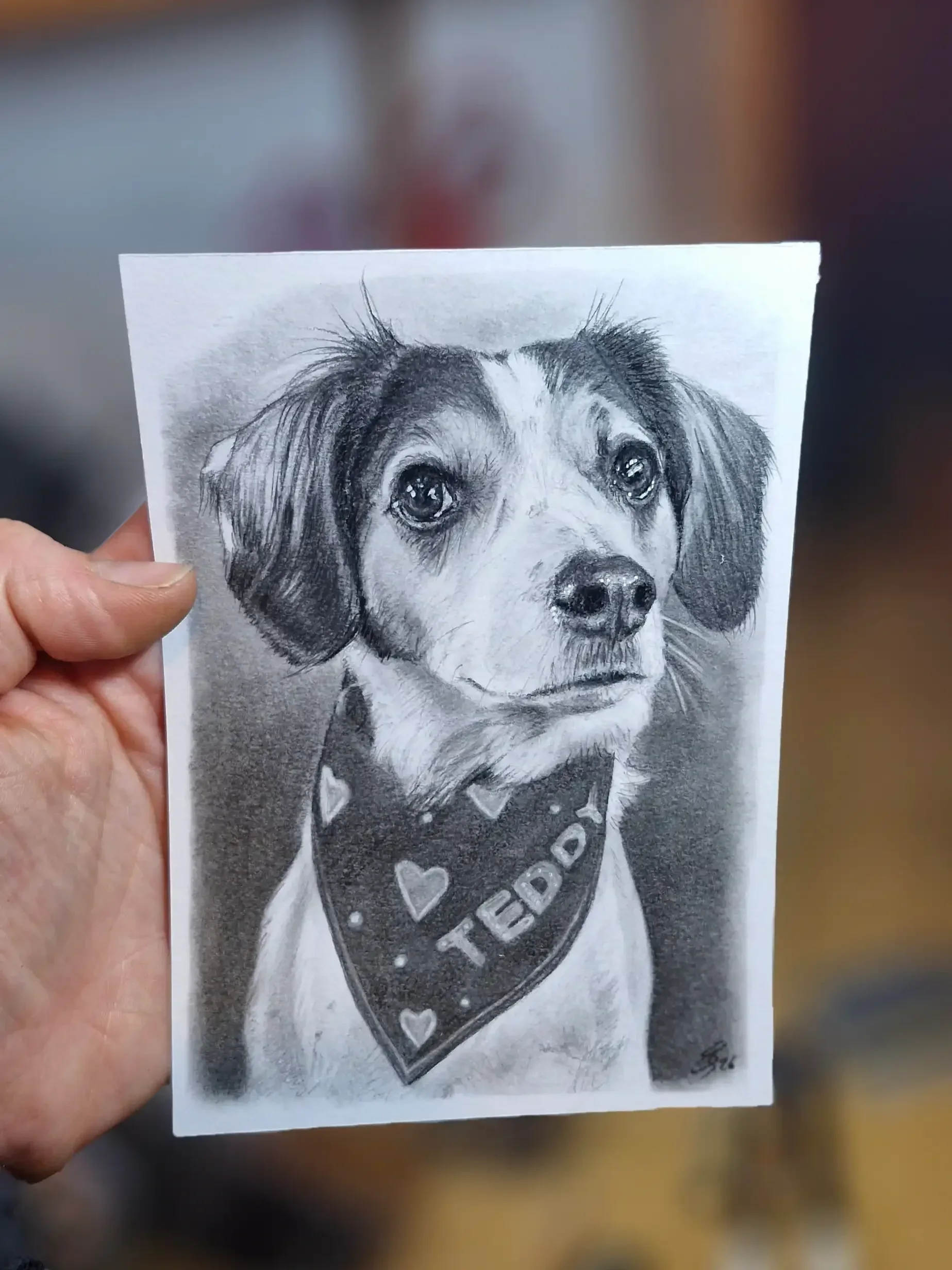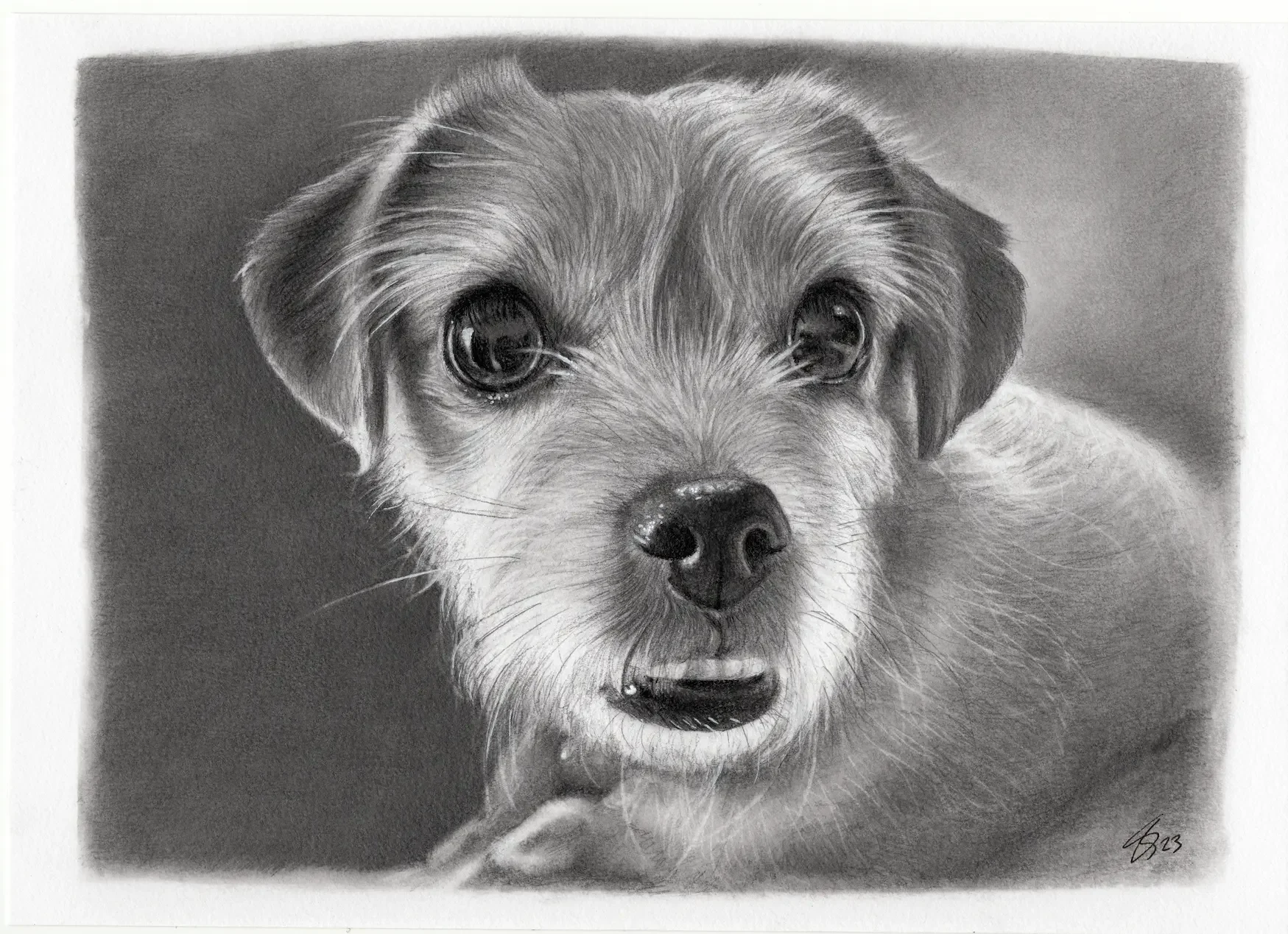 My roots lie in Graphite Portraiture - these highly detailed pieces are intricately crafted over the course of many weeks using a mix of graphite, charcoal, and ink. Pets, people, places, or anything in between - if you have a photo, I can draw it.
